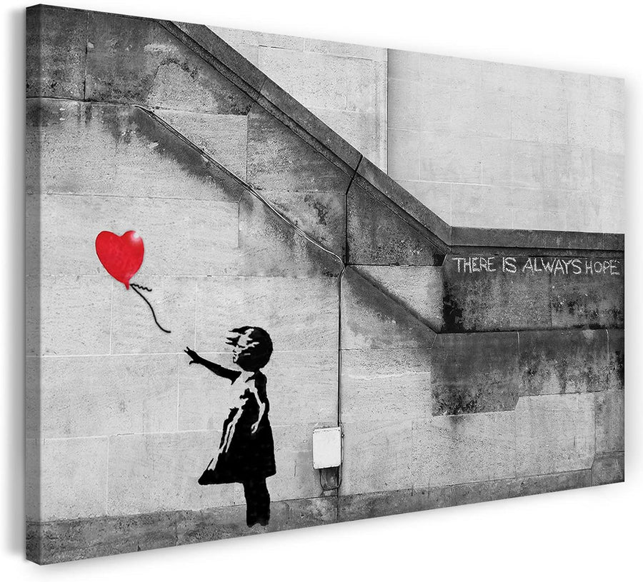 Printed Paintings Leinwand (80x60cm): Banksy - Balloon Girl Mädchen mit Luftballon Always Hope St 80