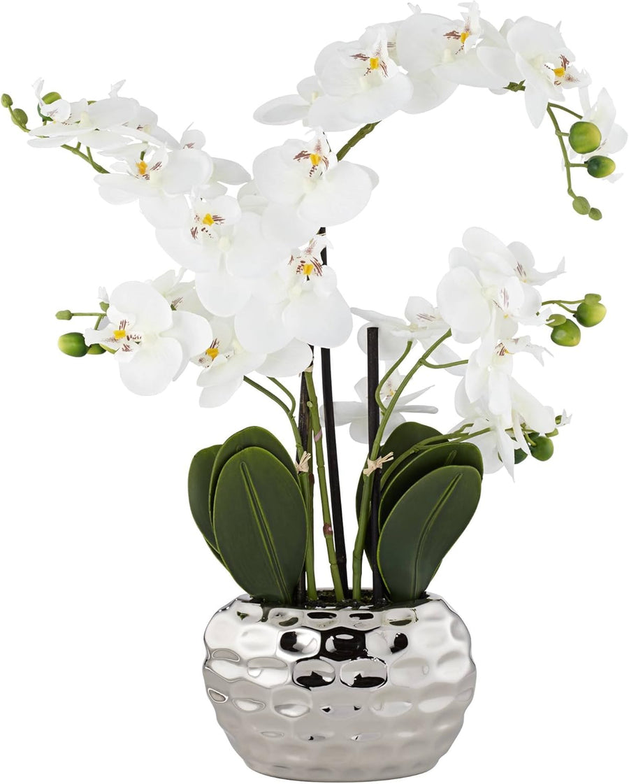 Dahlia Studios Kunstpflanze Orchidee Phalaenopsis mit silber-farbigem Keramiktopf - ca. 53cm hoch (w