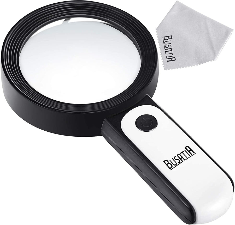 BUSATIA Lupe mit 18 Led Licht, 30X Handlupe Leselupe mit 3 Beleuchtungsmodi, Vergrösserungsglas zum