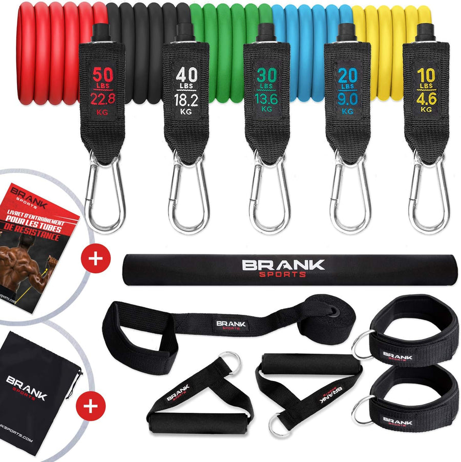 BRANK SPORTS® Widerstandsbänder-Set mit Griffen und 13 Teilen – Einstellbare Fitnessbänder als Set v
