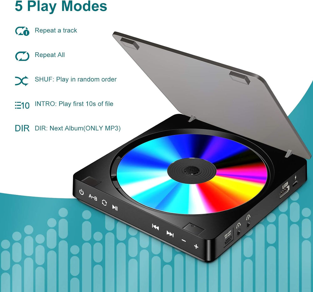 Gueray Tragbarer CD Player 1200 mAh Persönlicher Wiederaufladbar MP3 CD Player mit Doppelte 3.5mm Ko