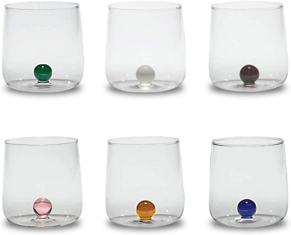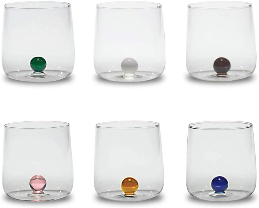 Zafferano Bilia Tumbler Set 6 Wassergläser transparent mit Kugel in 6 verschiedenen Farben