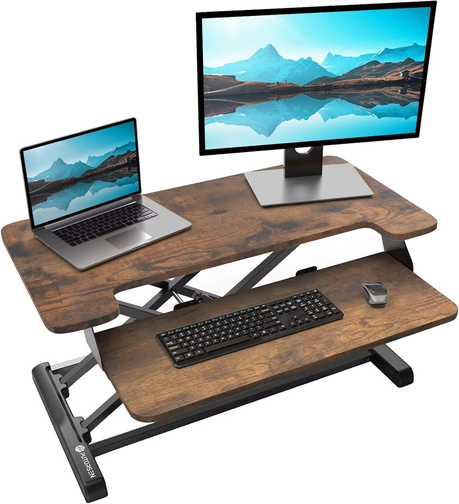 PUTORSEN Höhenverstellbarer Sitz-Steh-Arbeitsplatz Schreibtisch Computer Riser Workstation, Schreibt