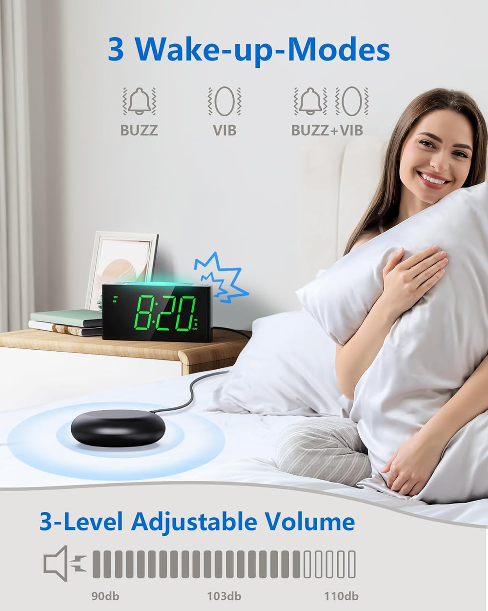 Vibrationswecker für Gehörlose&tiefschläfer, Wecker mit Lautem Alarm, Bett-Shaker, Grosses LED-Anzei