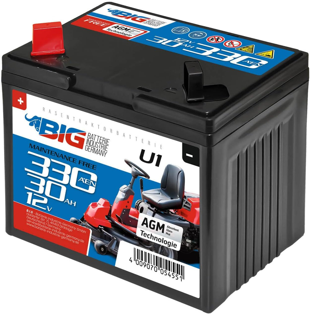 BIG U1 Garden Power Rasentraktor-Batterie 12V 30Ah 310A Starterbatterie für Aufsitzmäher wartungsfre