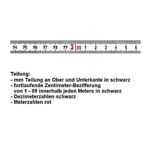 Skalenbandmass - Stahl weiss lackiert - Bezifferung von links nach rechts - Breite: 13mm, mit Duplex
