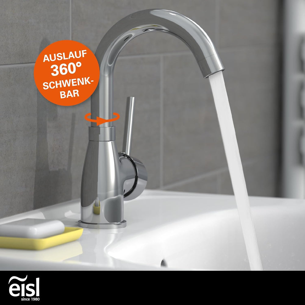 EISL Waschtischarmatur FUTURA, energiesparende Waschbeckenarmatur, 360° schwenkbarer Wasserhahn Bad,