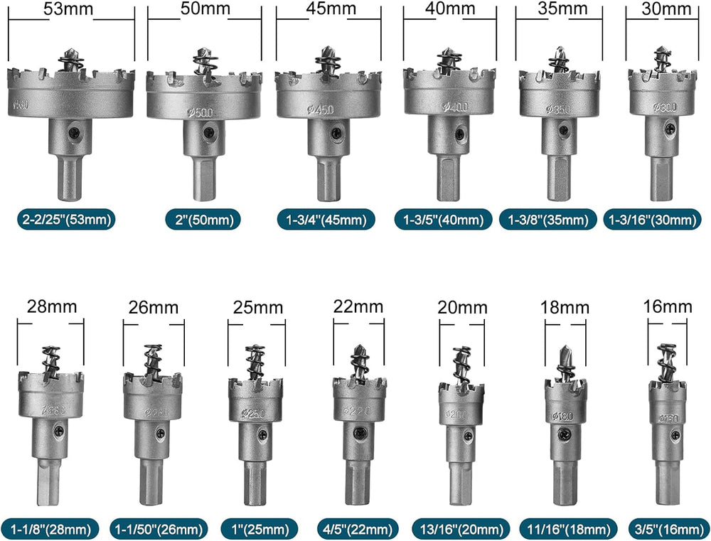 Hakkin 13 Stück 16-53mm Lochsäge Hartmetall-Bohrer, Lochschneider Multiple-tooth HSS Set TCT Carbid