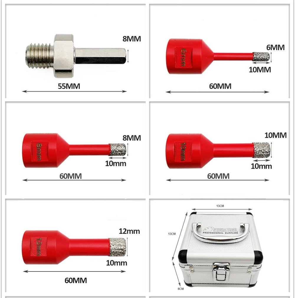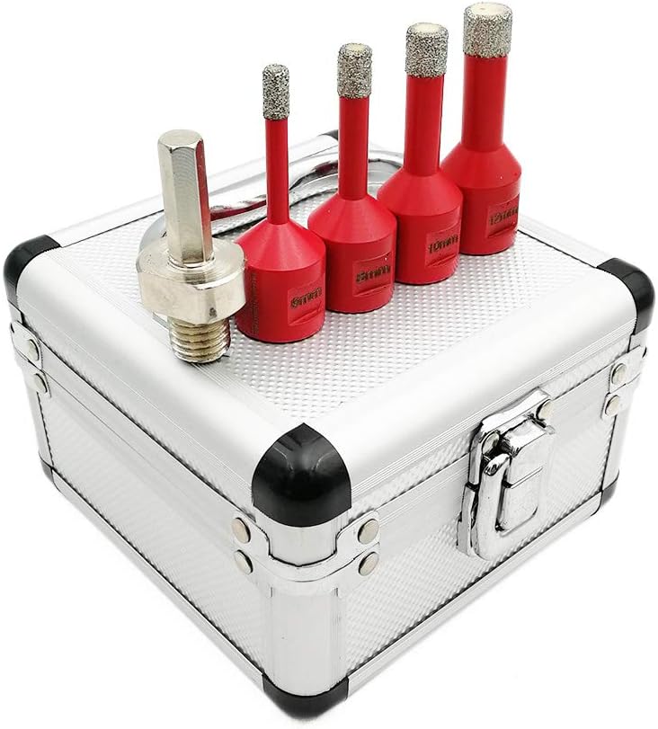 SHDIATOOL Diamant Bohrkrone Set 5-teilig mit Box 6/8/10/12mm and ein Adapter für Porzellan Fliese Gr