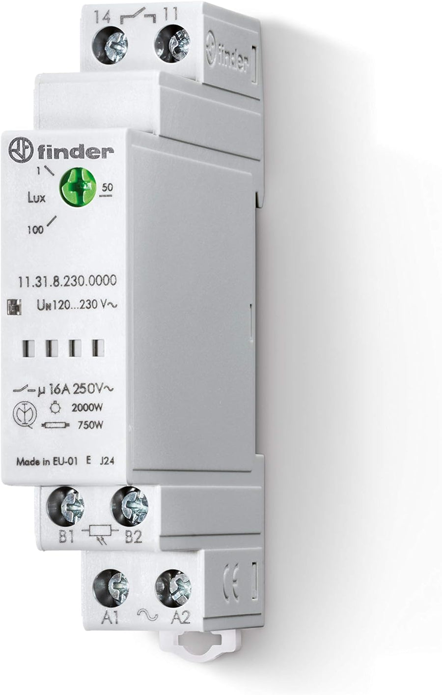 Finder 113182300000PAS Dämmerungsschalter, 1 Schliesser, 16 A, 110 A, 230 VAC, geringe Breite, 17,5