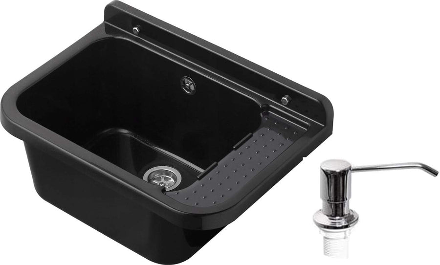 VBChome Ausgussbecken mit Seifenspender 59 x 34 x 21 cm Schwarz Spülbecken Waschtrog mit Überlauf Wa