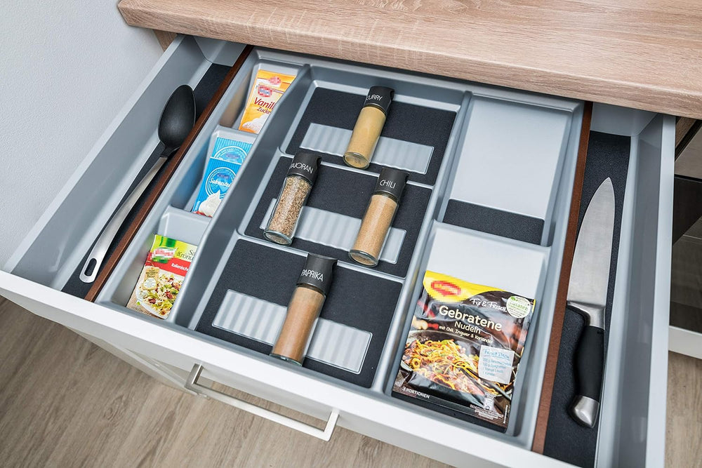 LANA solution 70er - 120er Schublade - Universal Gewürzeinsatz – Tiefe wählbar (Silber, 462 mm Schub