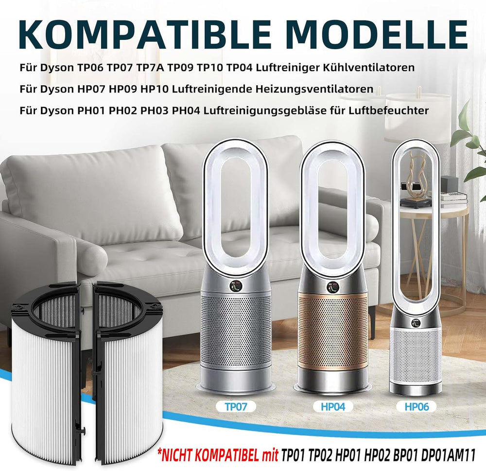 - 【Perfekte KompatibilitäT】: 2-in-1 360° Kombi Glas HEPA filter ist kompatibel mit Dyson Luftreiniger TP06 TP07 TP09 TP10 Pure Cool, HP07 HP09 HP10 Purifying Heater Fan, PH01 PH02 PH03 Purifying Humidifier. ★Vergleichen mit Teil #970341-01 und