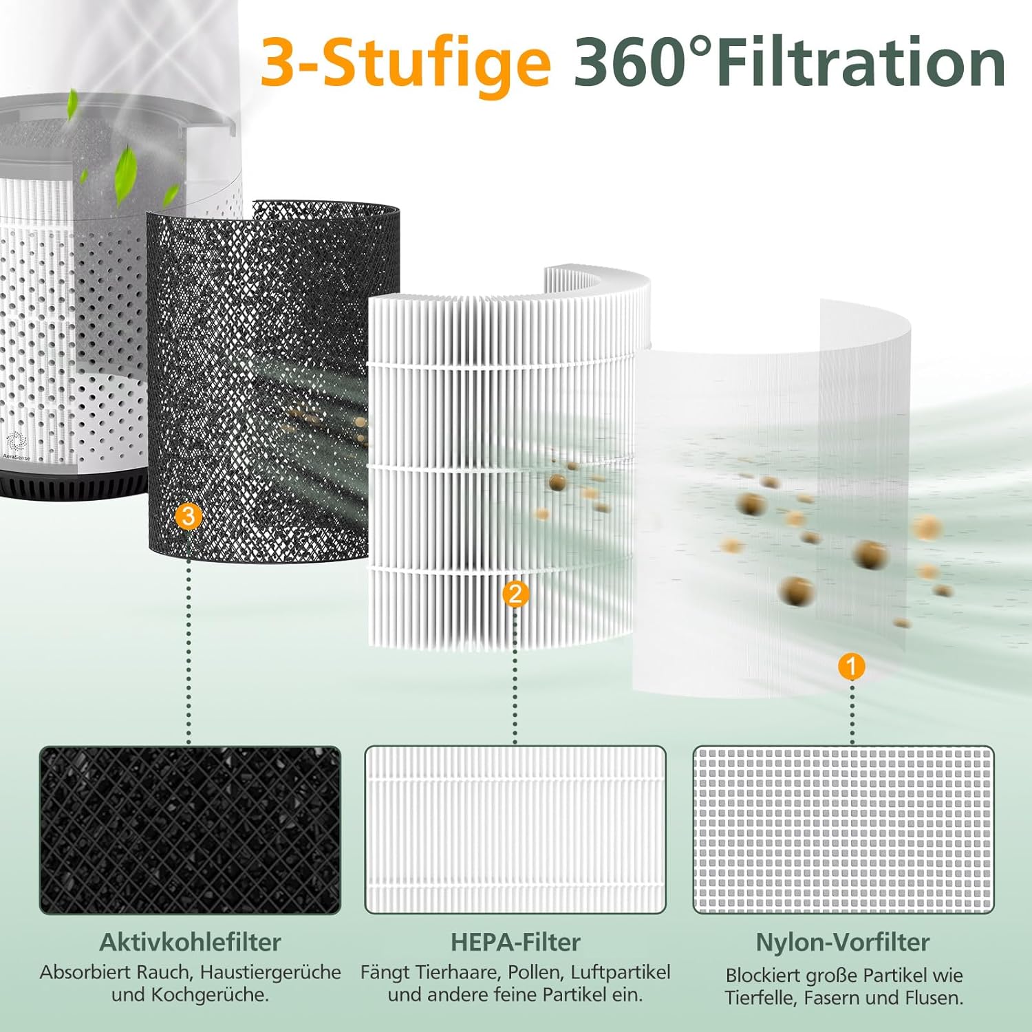- 【RegelmäSsig Ersetzen】: Wir empfehlen, den Ersatzfilter alle 12 Monate auszutauschen, um die optimale Luftreinigung Ihres Luftreinigers zu gewährleisten (abhängig von Ihrer Umgebung und Nutzung).