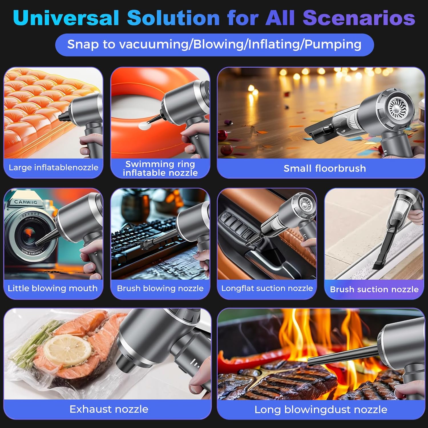 - 【Multifunktionales Design】Es ist nicht nur ein Akku handstaubsauger, sondern auch ein Air Duster und eine Druckluftpumpe. Wenn Sie drei verschiedene Düsen und Minibürsten auf einmal kaufen, können Sie eine Menge Geld sparen.
