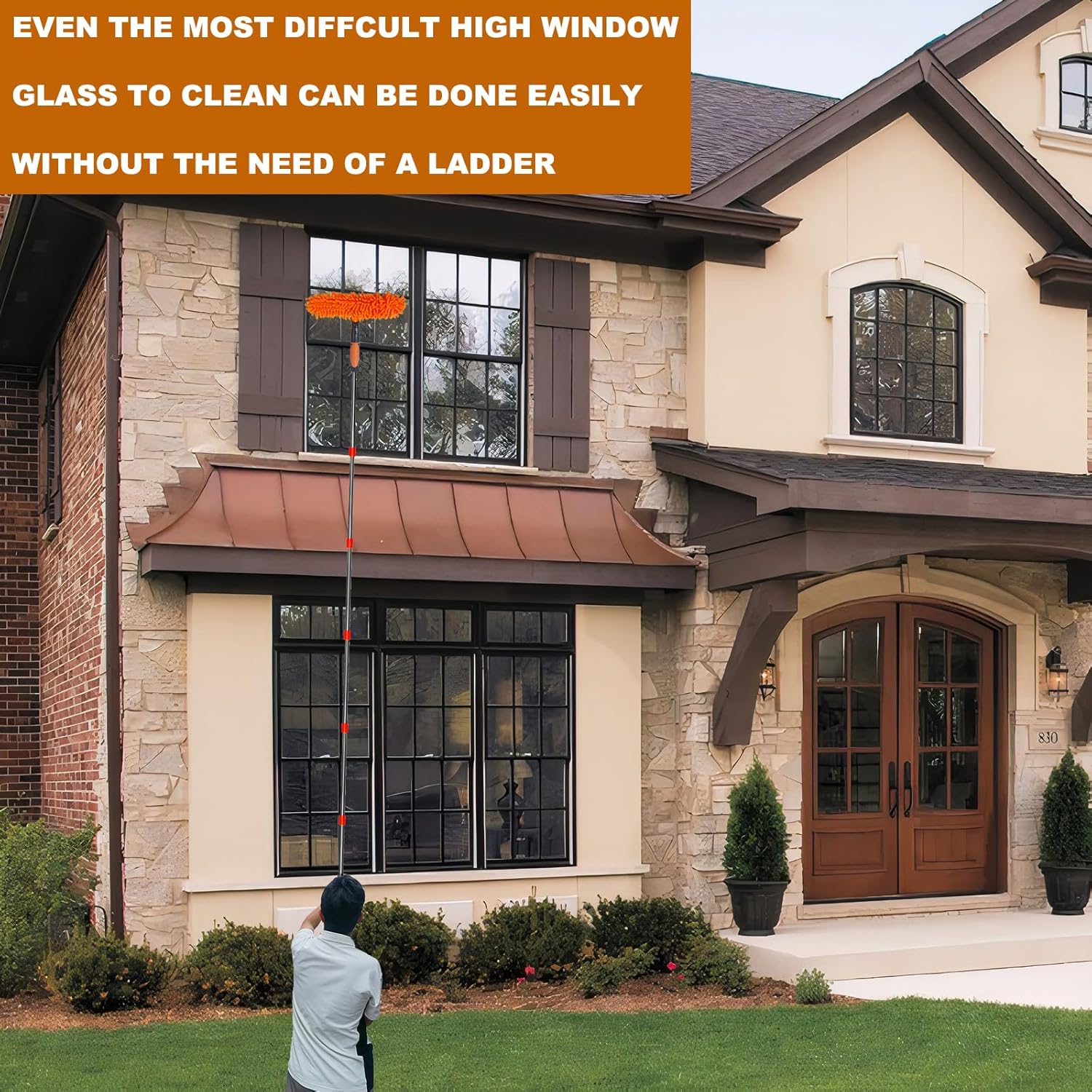 - 6 m + Reichweite, Fensterreiniger, Staubwedel, 2-in-1, drehbares Fensterreinigungswerkzeug-Set mit 9-4,3 m Verlängerungsstange, Fensterwaschausrüstung für Innen- und Aussenbereich, Fenster-Autoglas, 3 Pads