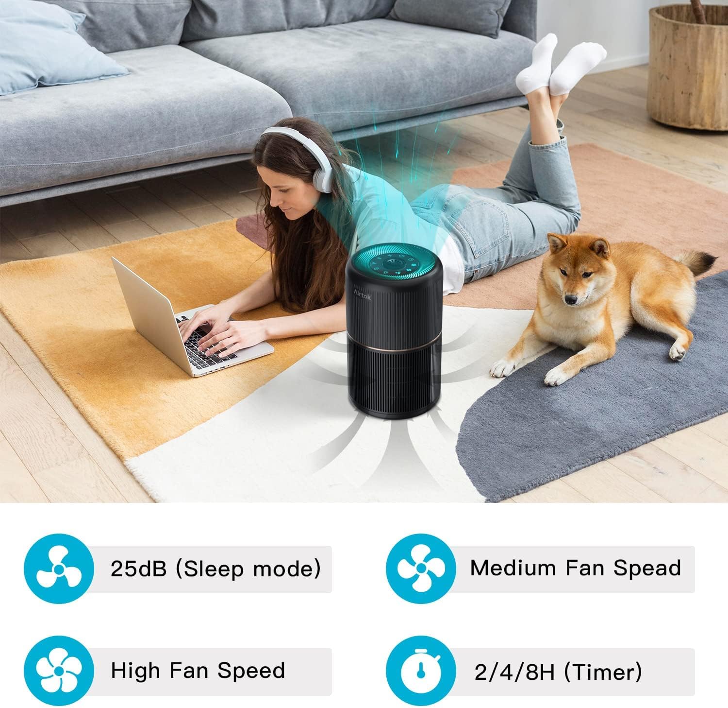 - Effizienter 4-stufiger Luftfilter: Besteht aus ultrafeinem Vorfilter, blauem Nano-Nylon, H13 HEPA Luftfilter und effektivem Aktivkohlefilter. AIRTOK air purifier fangen 99,97% der Partikel in der Luft, die so klein wie 0,1 Mikrometer sind, wie Staub,