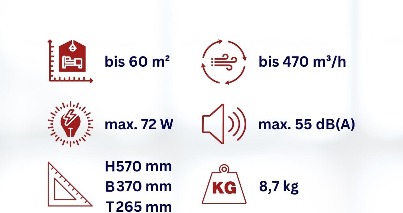 - Vorfilter + Luftsensor (misst automatisch die Luftqualität) + Timer + 3 Geschwindigkeitsstufen + Touch-Panel + Fernsteuerung + Temperatur & Luftfeuchtigkeitsanzeige + Filter Wechselanzeige !