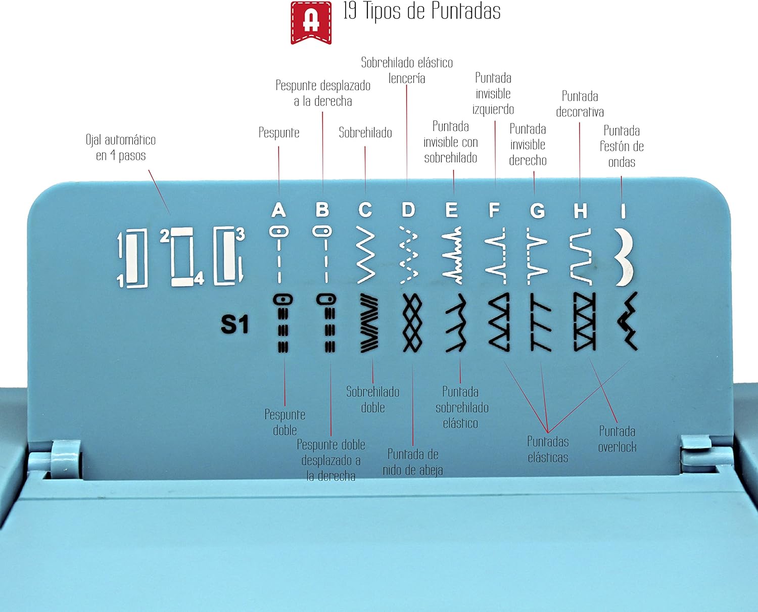 - 19 Sticharten; einschliesslich automatisierte Sticheinstellung für elastische Stoffe