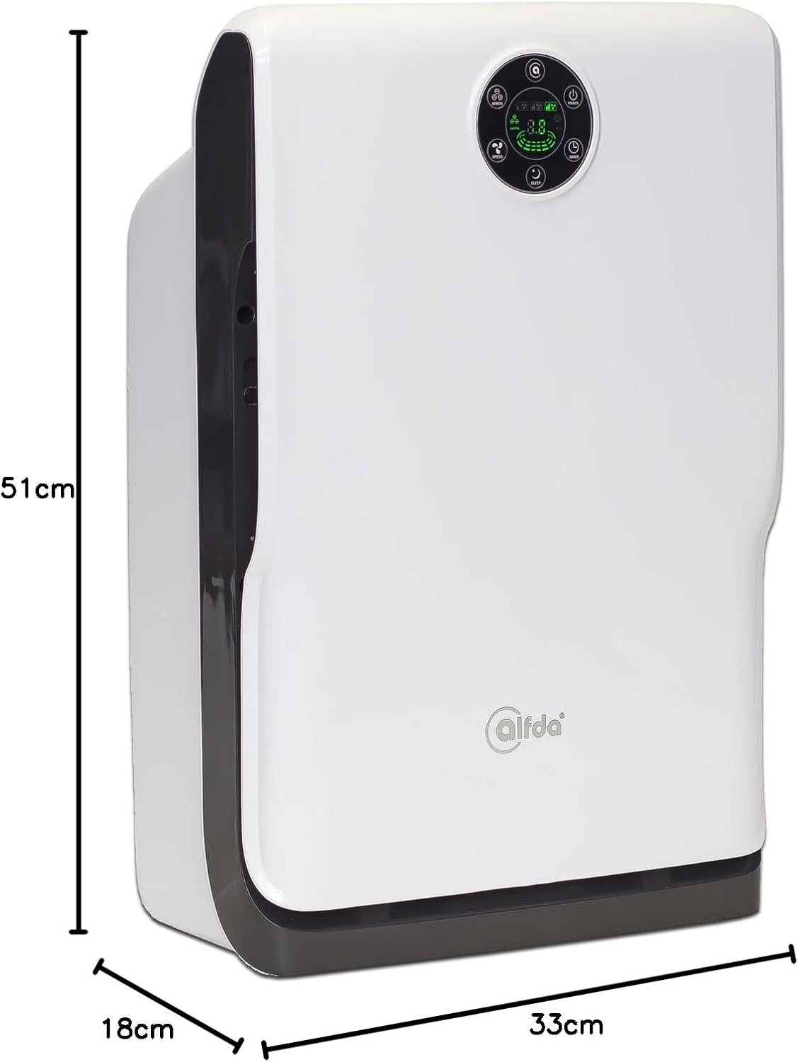 - Raumluftreiniger geeignet für Innen-Räume (Wohnzimmer, Küche, Kinder-Zimmer, Büro,…) bis 30m², 155 m³/h Luftleistung, modernes und schlichtes Design