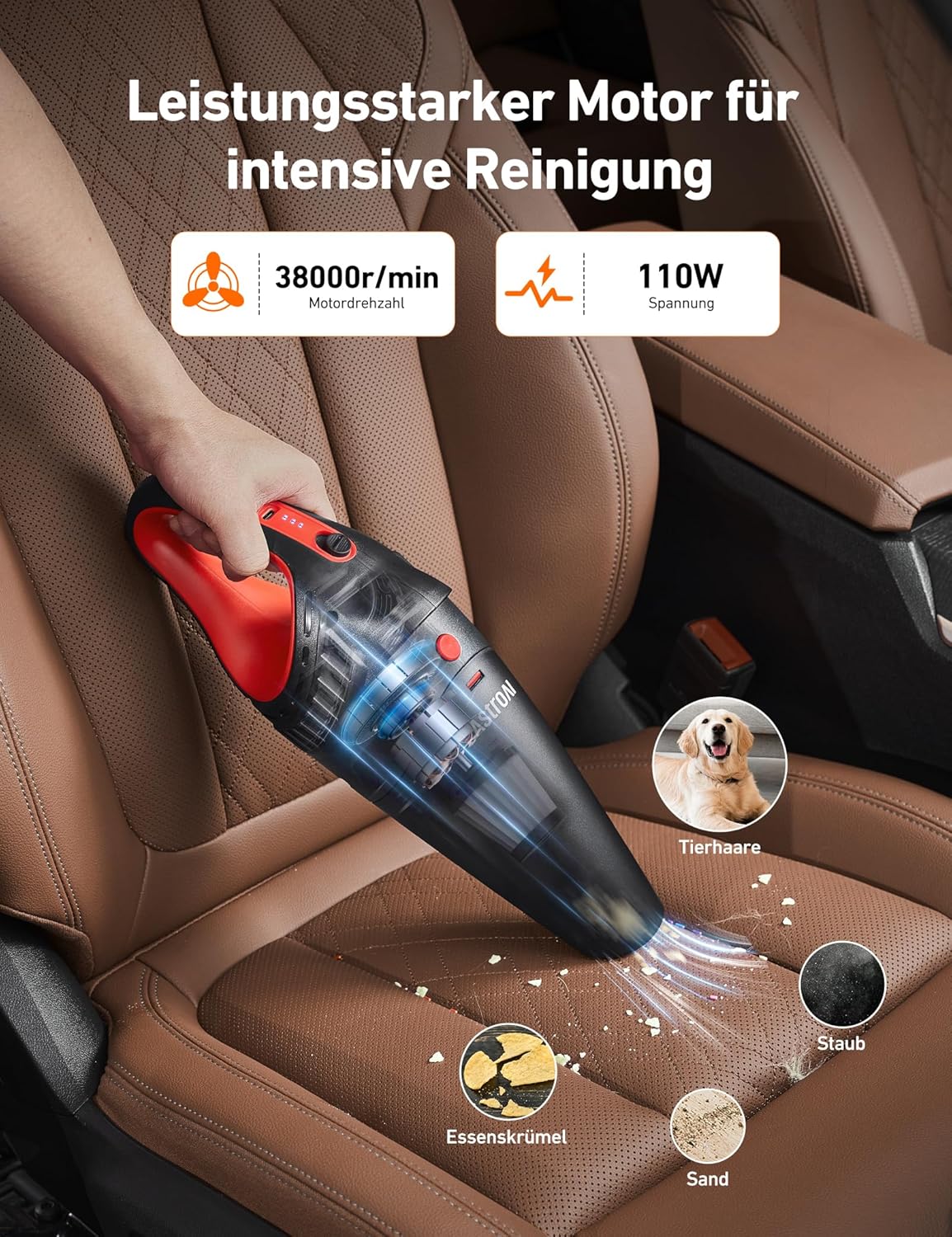 - 【Reinigen Sie Ihr Auto professionell】 Der verbesserte Handstaubsauger kabellos verfügt über einen leistungsstarken Motor und ein fortschrittliches Lüfterrad aus Aluminium, das eine Saugleistung von bis zu 7500 Pa ermöglicht, um Ihr Auto effektiv