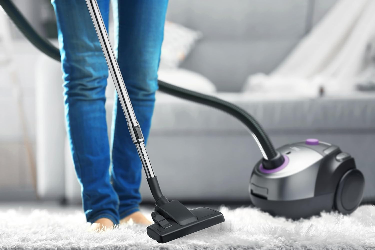 - Lieferumfang: 1x Bestron Bodenstaubsauger mit Beutel, mit 3x Staubsaugerbeuteln, XL Teleskopstange & Fugendüse, Leistung: 750 Watt, Gewicht: 4.7Kg, Gummiräder, Farbe: Lila/Silber, ABG450SPE
