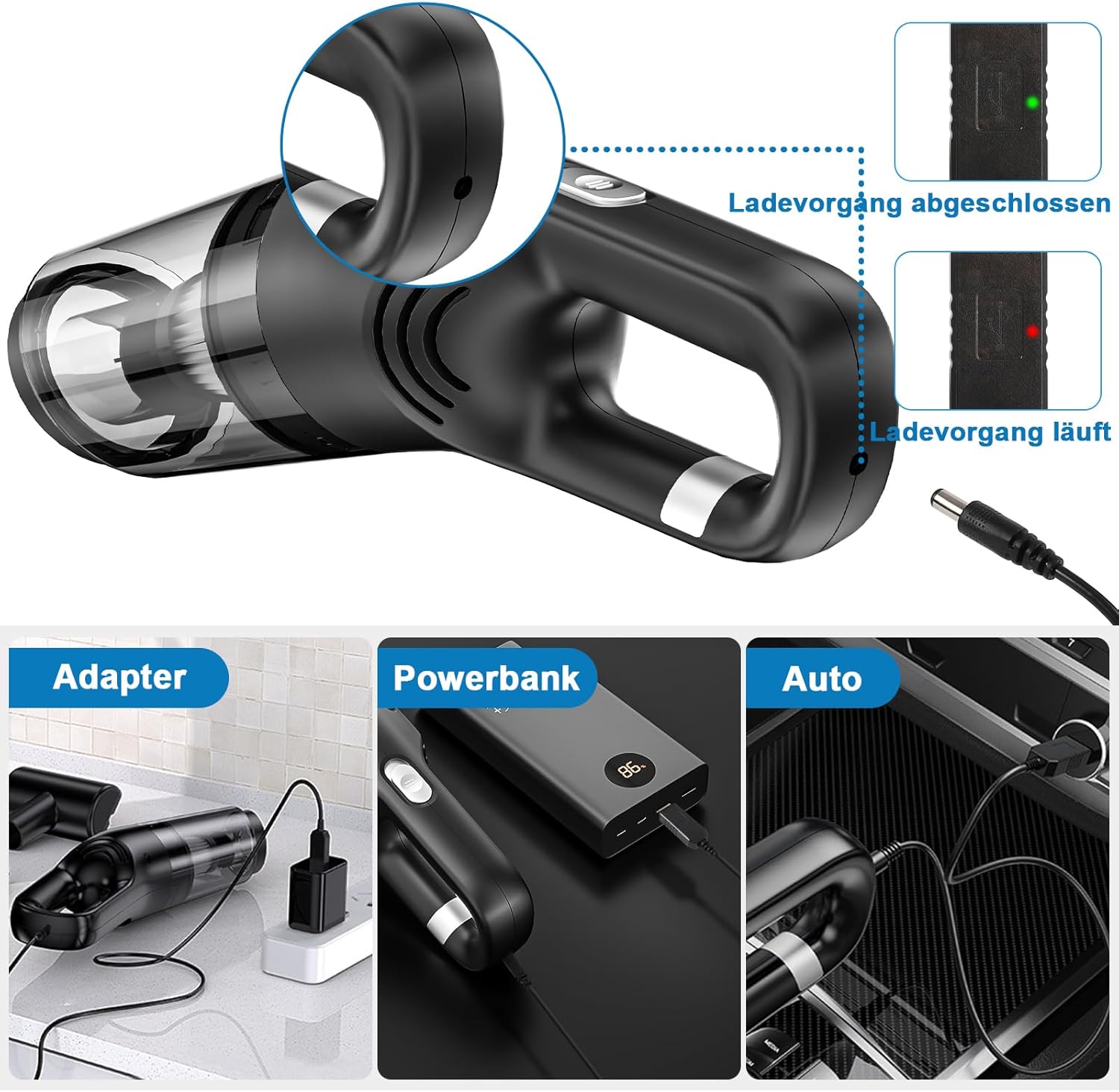 - ✔9000PA starke Saugleistung: Dieser Handstaubsauger mit einer starken Saugleistung von bis zu 9000PA reinigt effizient nicht nur Staub, Tierhaare, sondern auch kleine Bohnen. Gleichzeitig reduziert es den Arbeitslärm und sorgt dafür, dass Sie viel