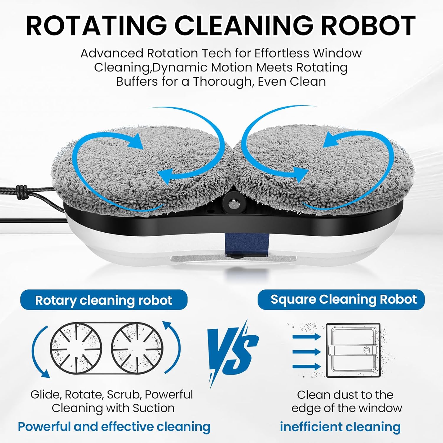 - 【Effektive reinigung】: Das doppelte Spiralwischsystem des Fensterreinigers bündelt den Schmutz und ermöglicht es dem Fensterreiniger, sich frei um das Fenster zu bewegen. Die rotierende Reinigungsmethode sorgt für doppelte Reinigungskraft. Er ist