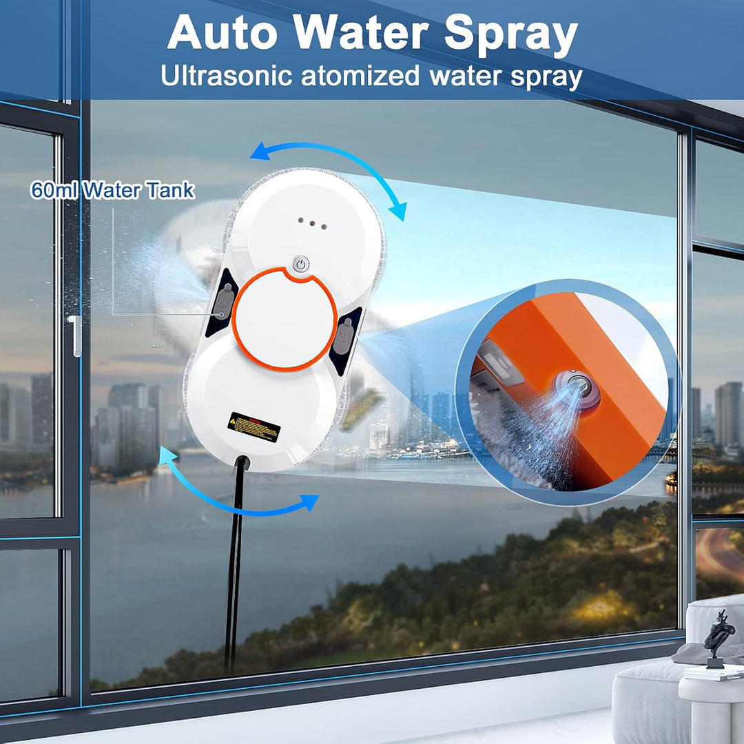 - 🍃【Effektive Zweifache Sprühreinigung】: Unser fensterputzroboter verfügt über eine Sprühfunktion, die eine schnelle und effiziente Reinigung grosser Fensterflächen ermöglicht. Mit seinem grosszügigen 60-ml-Wassertank können Sie alle Fenster