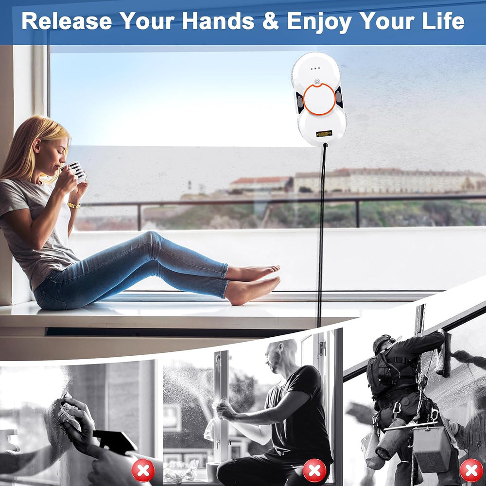- 🛡️【Höchste Sicherheitsstandards】: Unser fensterreiniger roboter wurde unter Berücksichtigung der Ergonomie entwickelt und kann mühelos mit nur einer Hand bedient werden. Selbst bei Stromausfall bleibt er dank des integrierten Akkus für 20-25