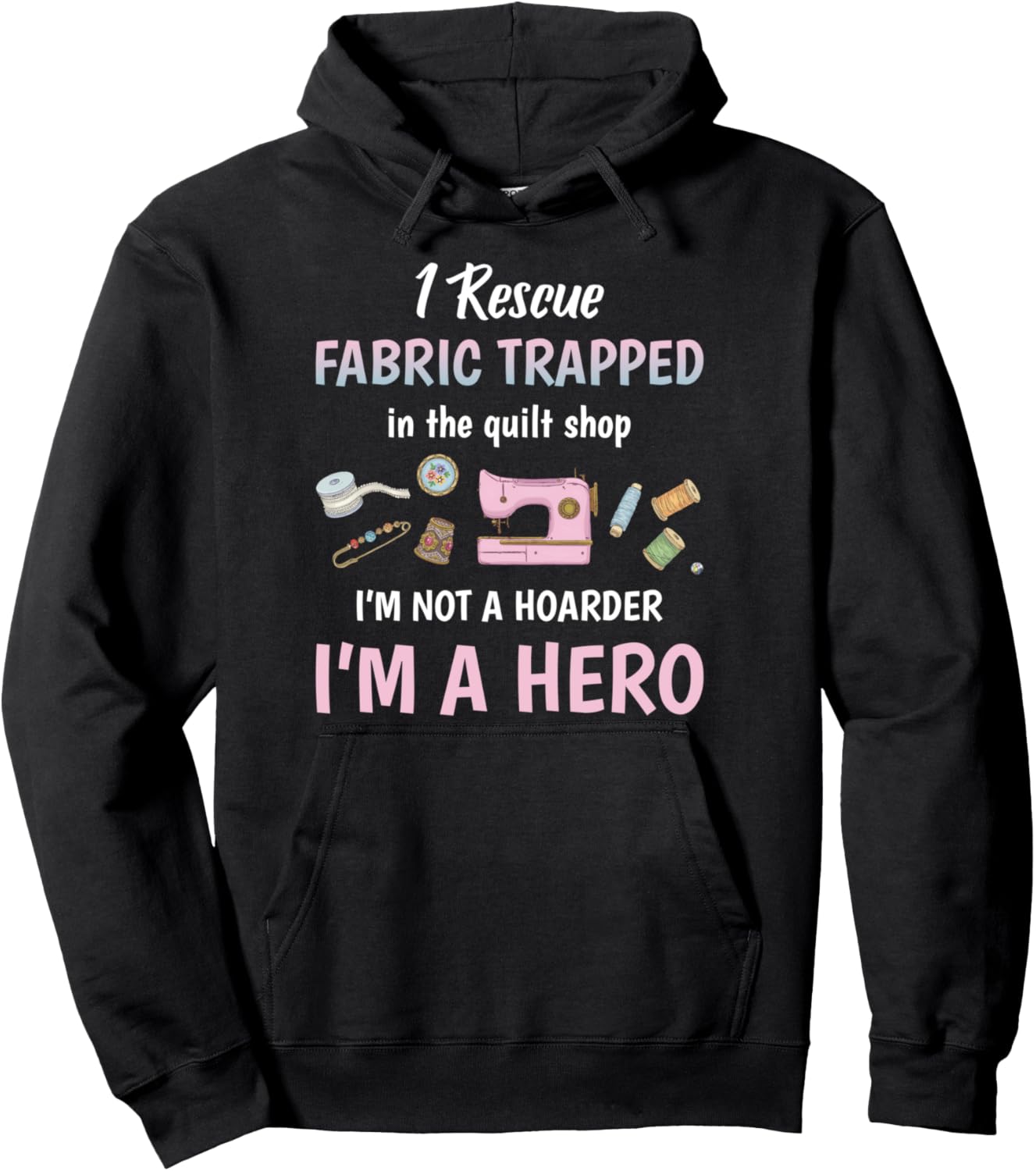 PRODUKTBESCHREIBUNGEN I rescue fabric trapped in the quilt shop im not a hoarder im a hero. Ein tolles Design für Näherinnen, jede Schneiderin und wenn dein liebstes Hobby die Handarbeit ist und du ein Profi an der Nähmaschine bist. Nähen, Stricken und Häkeln sind kein Problem für dich? Dann ist dieses Motiv für dich!