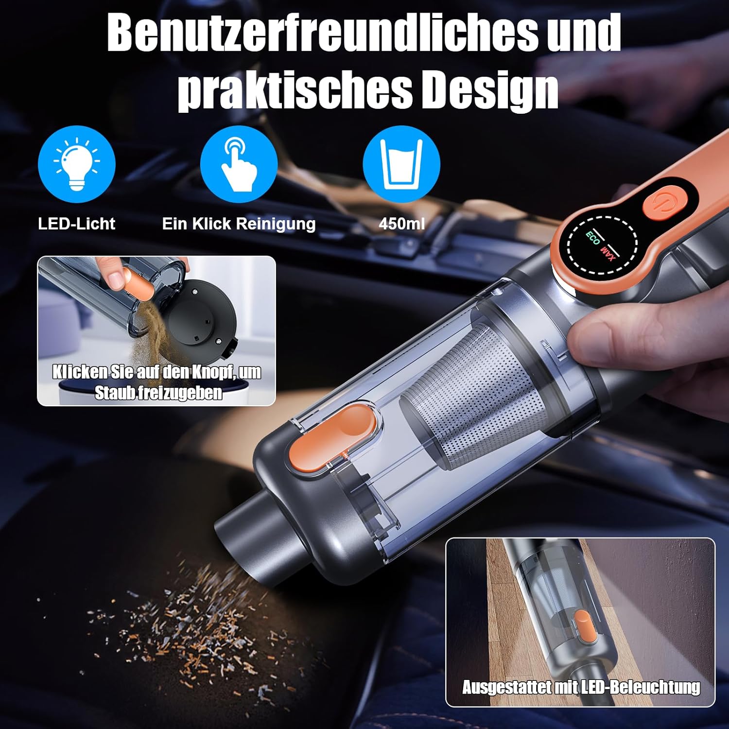 - 【26000Pa High Power Brushless Motor】Handstaubsauger akku nimmt die fortschrittlichste bürstenlose Motortechnologie an, mit einer Geschwindigkeit von bis zu 80.000 U/min und einer Saugkraft von 26.000Pa. Leistungsstarke Absaugung kann effektiv