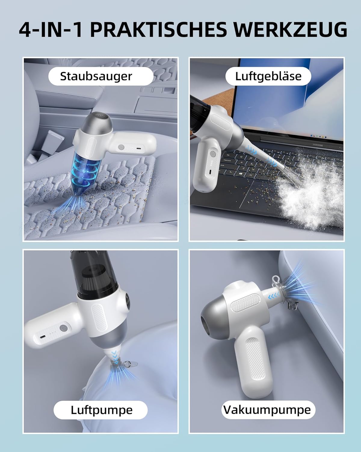 - 【Eine einzigartige Reinigungslösung, die für alle Szenarien geeignet ist】 Unser EBOSSOM V6 Ultra Weiss Handstaubsauger ist nicht einfach ein gewöhnlicher Staubsauger, sondern eine 4-in-1 multifunktionale Reinigungslösung, die all Ihren