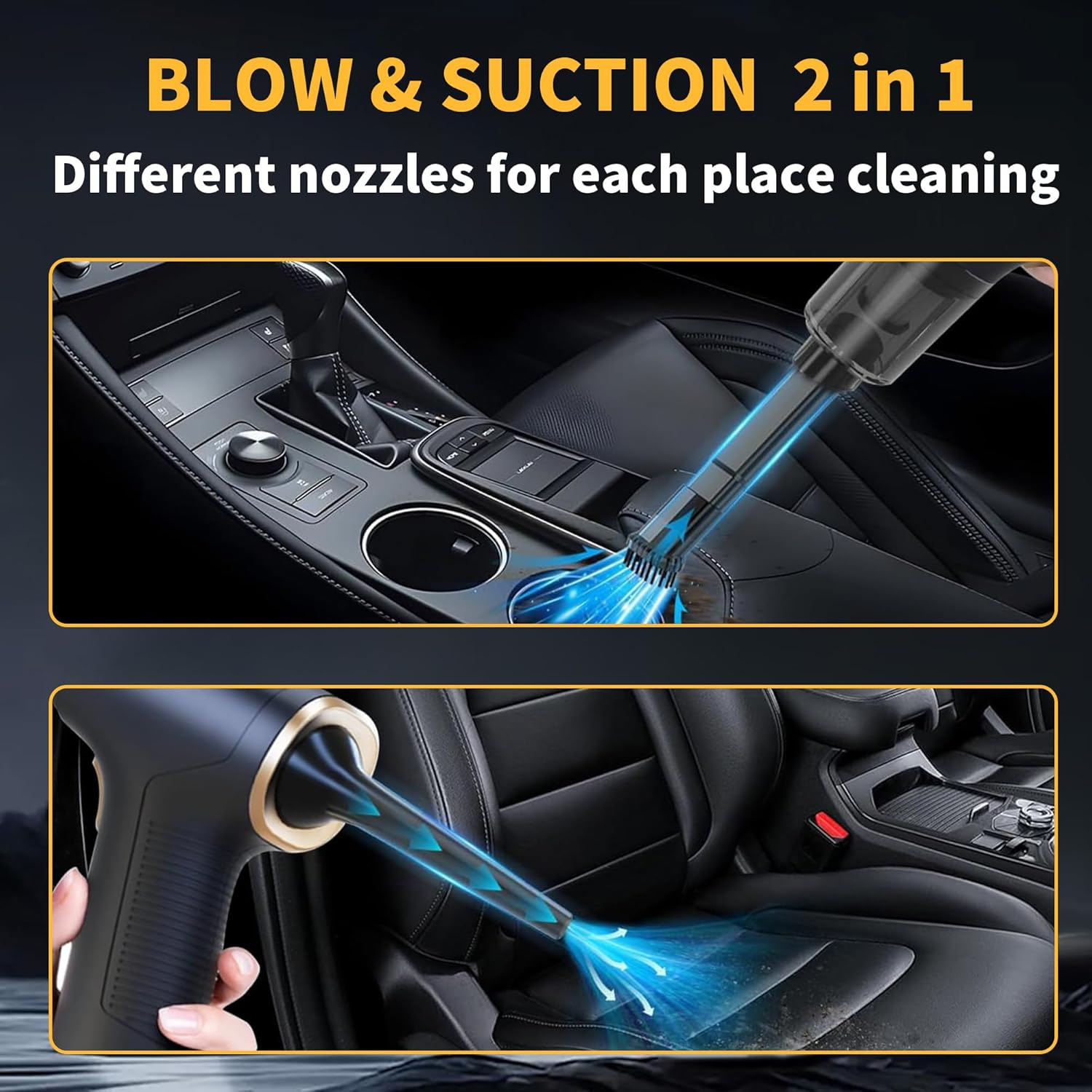 - 𝐒𝐭𝐚𝐫𝐤𝐞 𝟏𝟓𝟎𝟎𝟎 𝐏𝐚 𝐒𝐚𝐮𝐠𝐥𝐞𝐢𝐬𝐭𝐮𝐧𝐠:Dieser Handstaubsauger Auto mit bürstenlosem Motor liefert 15000 Pa und entfernt Staub, Krümel und Schmutz aus Teppichen, Polstern und Innenraum