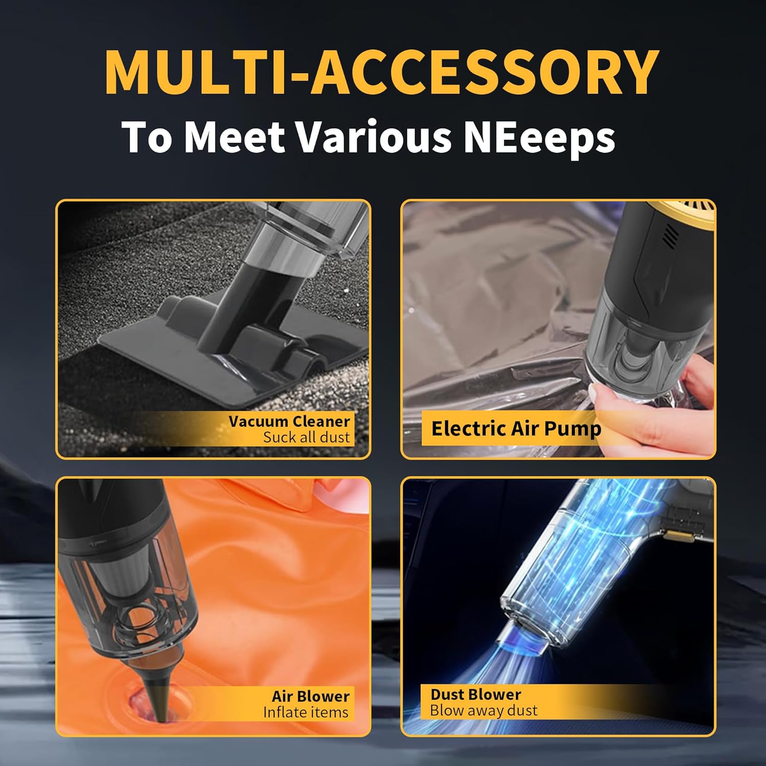 - 𝐕𝐢𝐞𝐫-𝐢𝐧-𝐄𝐢𝐧𝐬 𝐅𝐮𝐧𝐤𝐭𝐢𝐨𝐧:Der Mini Akku Staubsauger vereint Saugen, Blasen, Aufpumpen und Absaugen; perfekt für Autositze, Teppiche, Tierhaare, Tastaturen, Luftmatratzen sowie Haus-, Auto- und