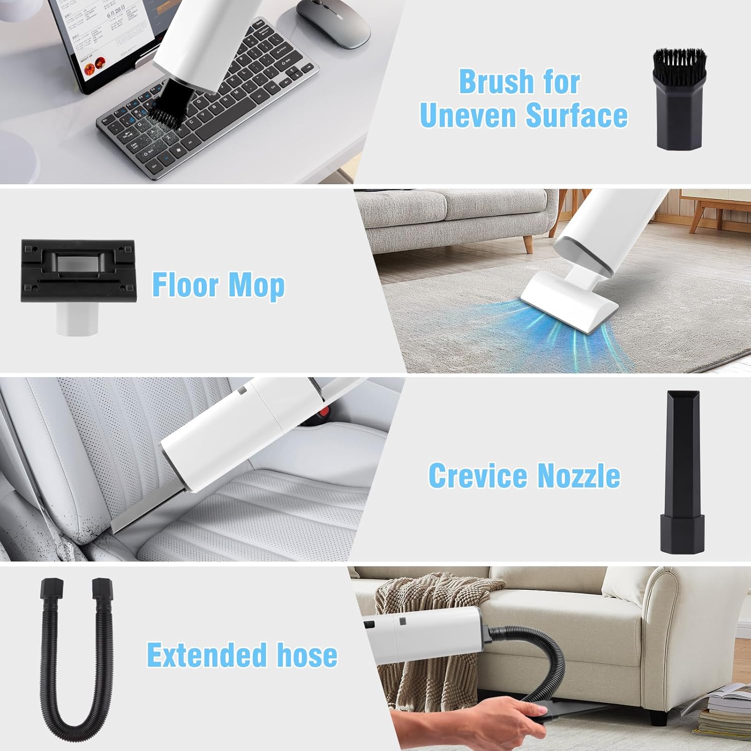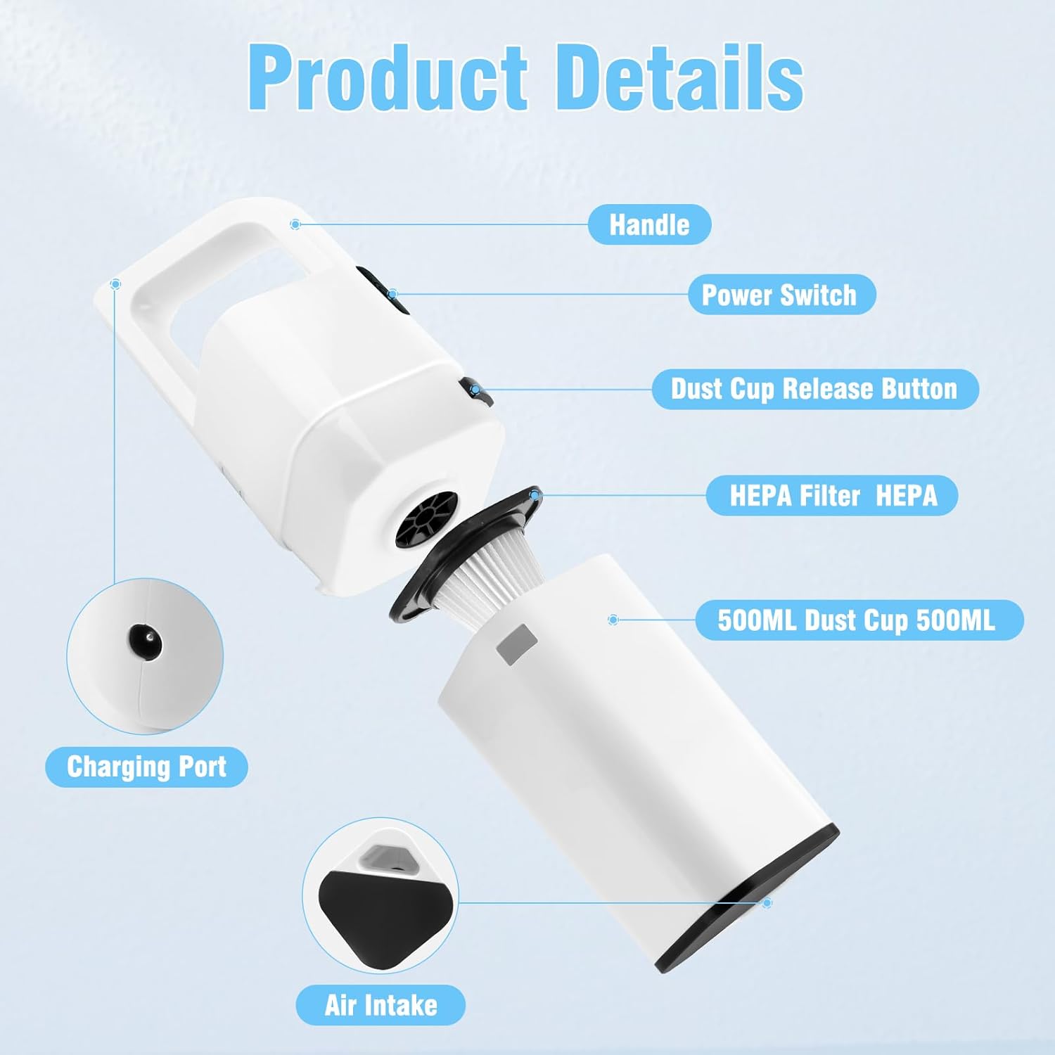 - 【20000PA Starke Saugkraft】Unser Handstaubsauger verfügt über eine beeindruckende Saugleistung von 20000PA, die mühelos Staub, Krümel und Tierhaare entfernt. Perfekt für die Reinigung von Autos, Sofas, Teppichen und anderen schwer zugänglichen