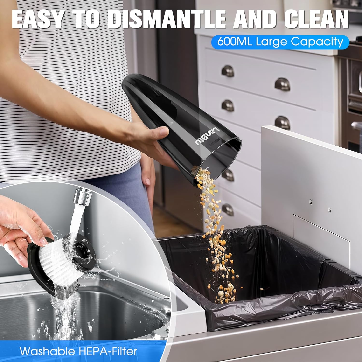 - 8.000 mAh Hochkapazitäts-Akku: Unser Handstaubsauger Kabellos kommt ohne sperrige oder verhedderte Kabel aus – einfach den Knopf gedrückt halten, um mit der Reinigung zu beginnen. Er verwendet einen hochwertigen Lithium-Ionen-Akku, der in nur drei