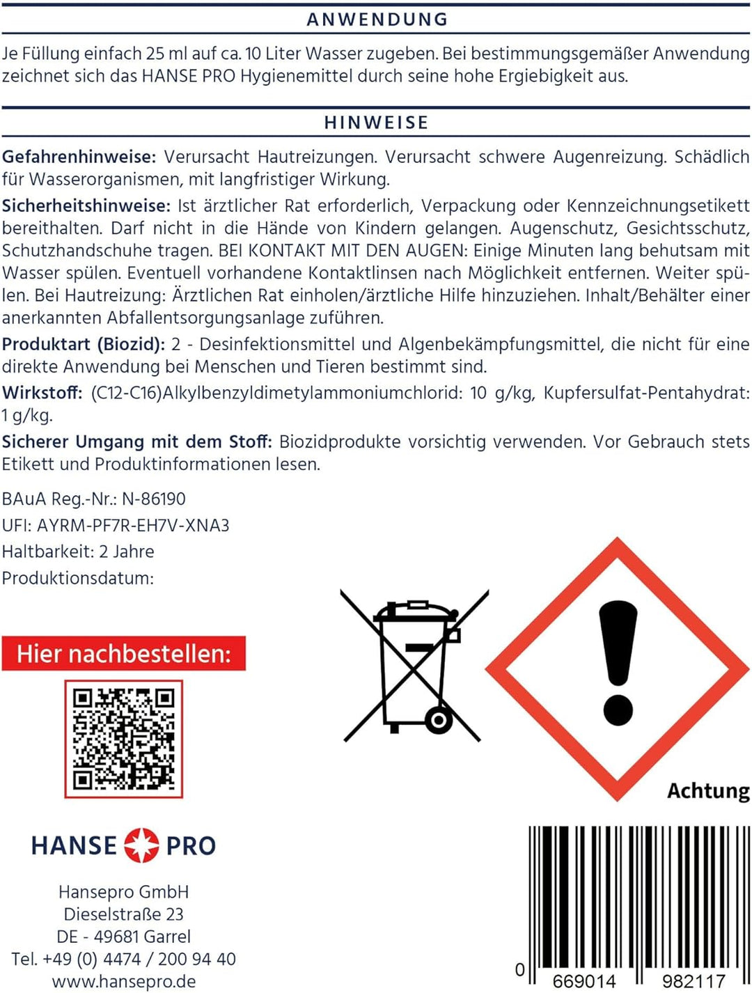 - ✓ QUALITÄT MADE IN GERMANY: Dieses tausendfach verkaufte und bewährte Produkt wird ausschliesslich in Deutschland unter hohen Qualitätsanforderungen hergestellt und abgefüllt. BAUA-Reg.-Nr. 86190, Hansepro Hygienemittel ist ein Bioziod.
