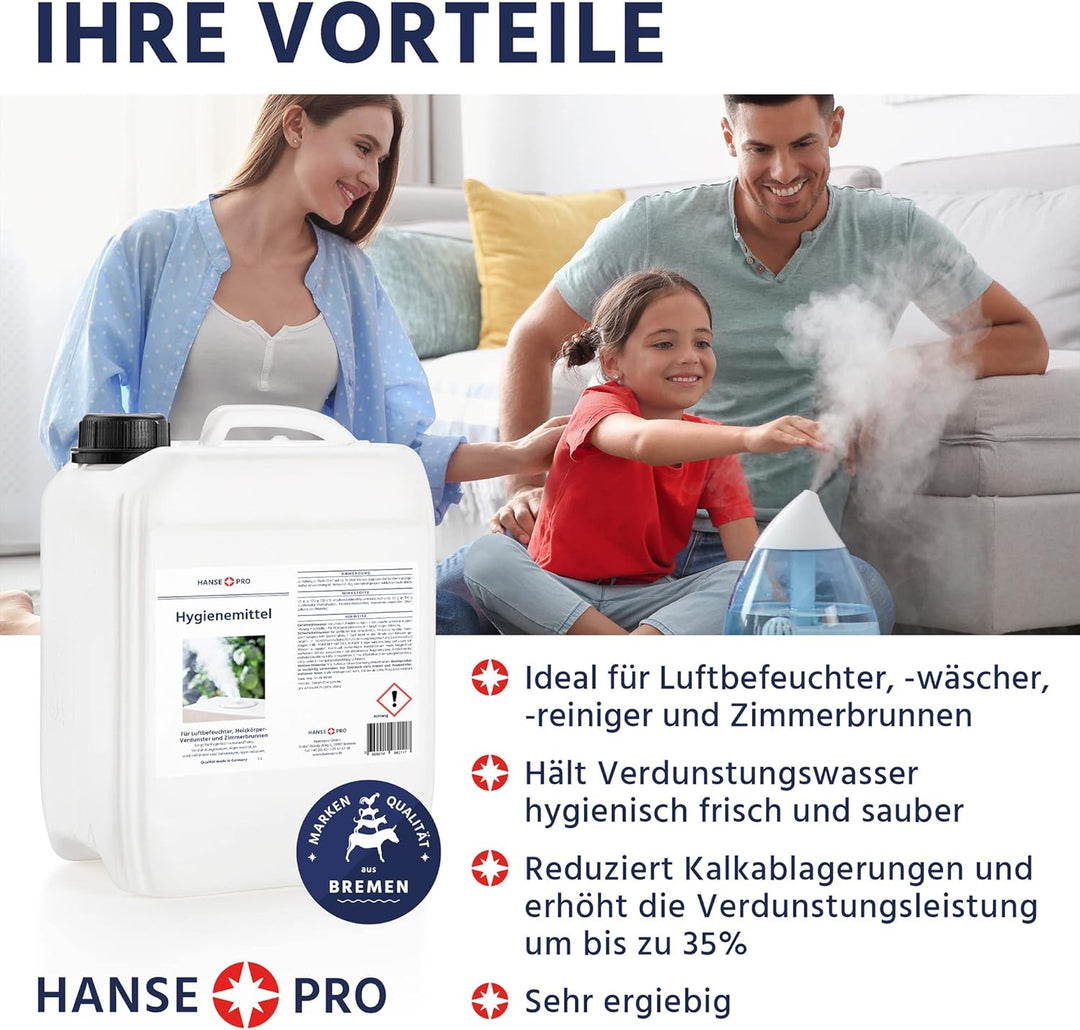 - ✓ HÄLT VERDUNSTUNGSWASSER FRISCH & HYGIENISCH: Hansepro Hygiene-Mittel sorgt dafür, dass Verdunstungs-Wasser hygienisch einwandfrei bleibt. Es vermeidet Bakterien- und Keimbildung. Das Algenwachstum wird verhindert. Dadurch kommt es zu keinen