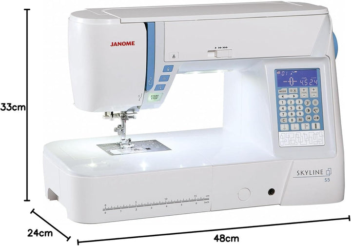 - 6 weisse LEDs, Arbeitsbereich: 210 x 120 mm, Start/Stopp-Taste, Stichplattenschnellwechsel, Freiarm / Flachbett