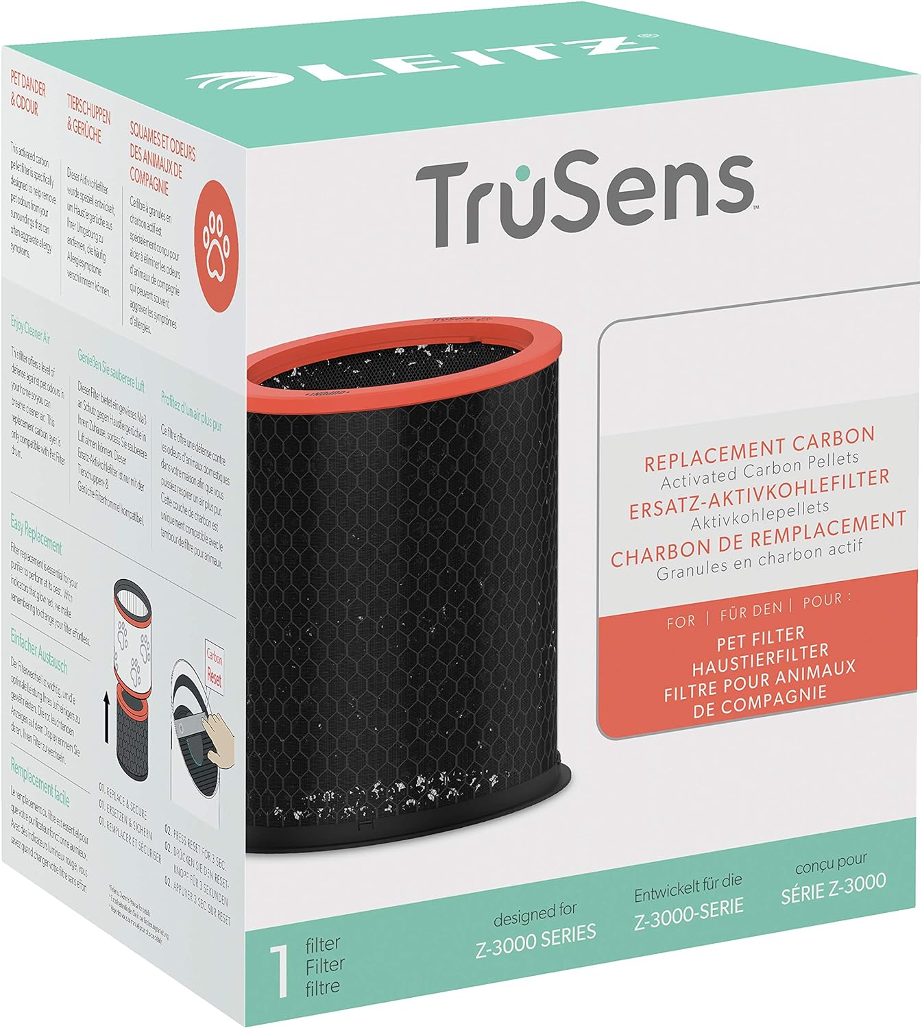 - Lieferumfang: 1 x Leitz TruSens Ersatz-Aktivkohlefilter für Haustier Filtertrommel für Leitz TruSens Z-3000/Z-3500 Luftreiniger, Abmessungen (B x H): 18,16 x 20,6 cm, 2415132