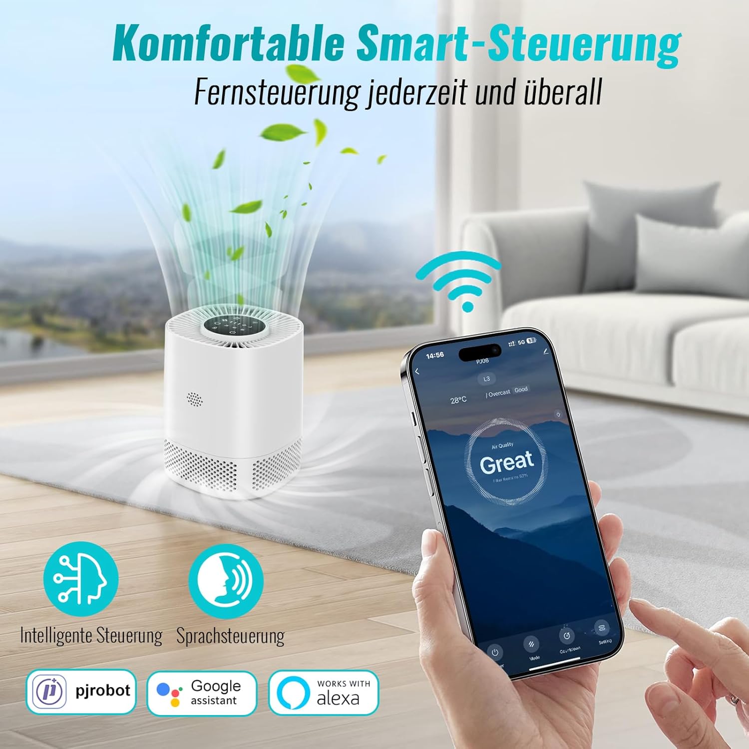 - 【App, Touch- und Sprachsteuerung】 Der luftreiniger verfügt über eine intelligente steuerung und geräuschkontrolle für deutlich verbesserten benutzerkomfort. Er überwacht ausserdem die luftqualität in echtzeit und ermöglicht einen rechtzeitigen
