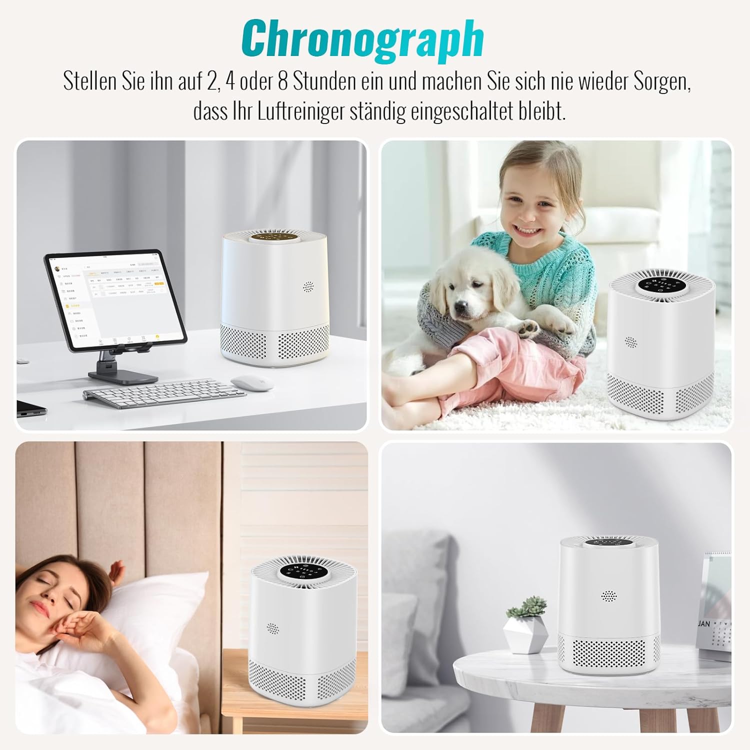 - 【3 einstellbare Windgeschwindigkeiten und Timer】 Sie können die betriebsgeschwindigkeit des luftreinigers an Ihre bedürfnisse anpassen. Er bietet ausserdem drei Timer-Modi: 2, 4 und 8 stunden. Der luftreiniger für das schlafzimmer zu hause