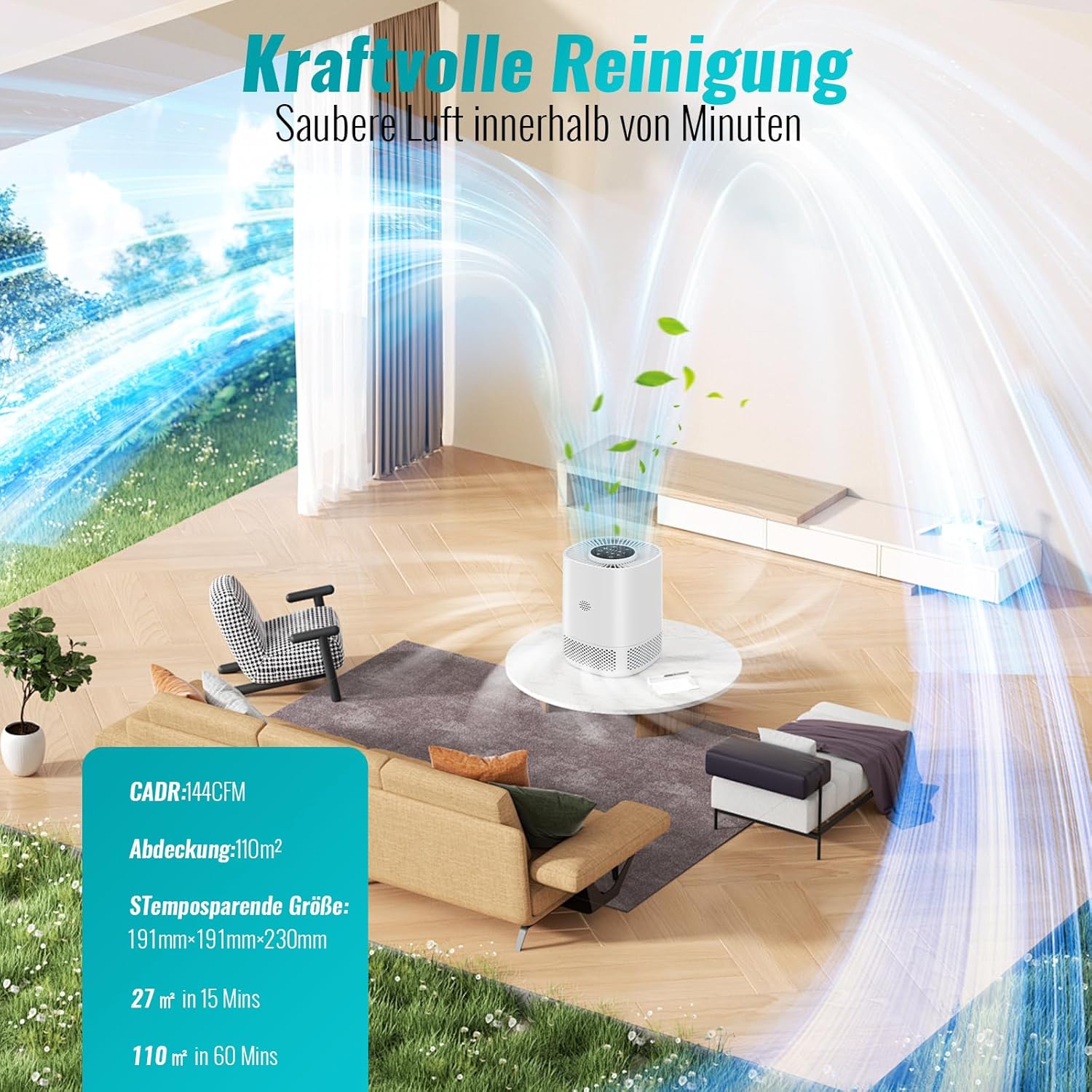 - 【Leistungsstarke Luftreinigung】 Dieser luftreiniger reinigt die luft in minutenschnelle – bis zu 30 quadratmeter in 15 minuten und bis zu 110 quadratmeter in 60 minuten. Er ist ideal für zuhause und büro.