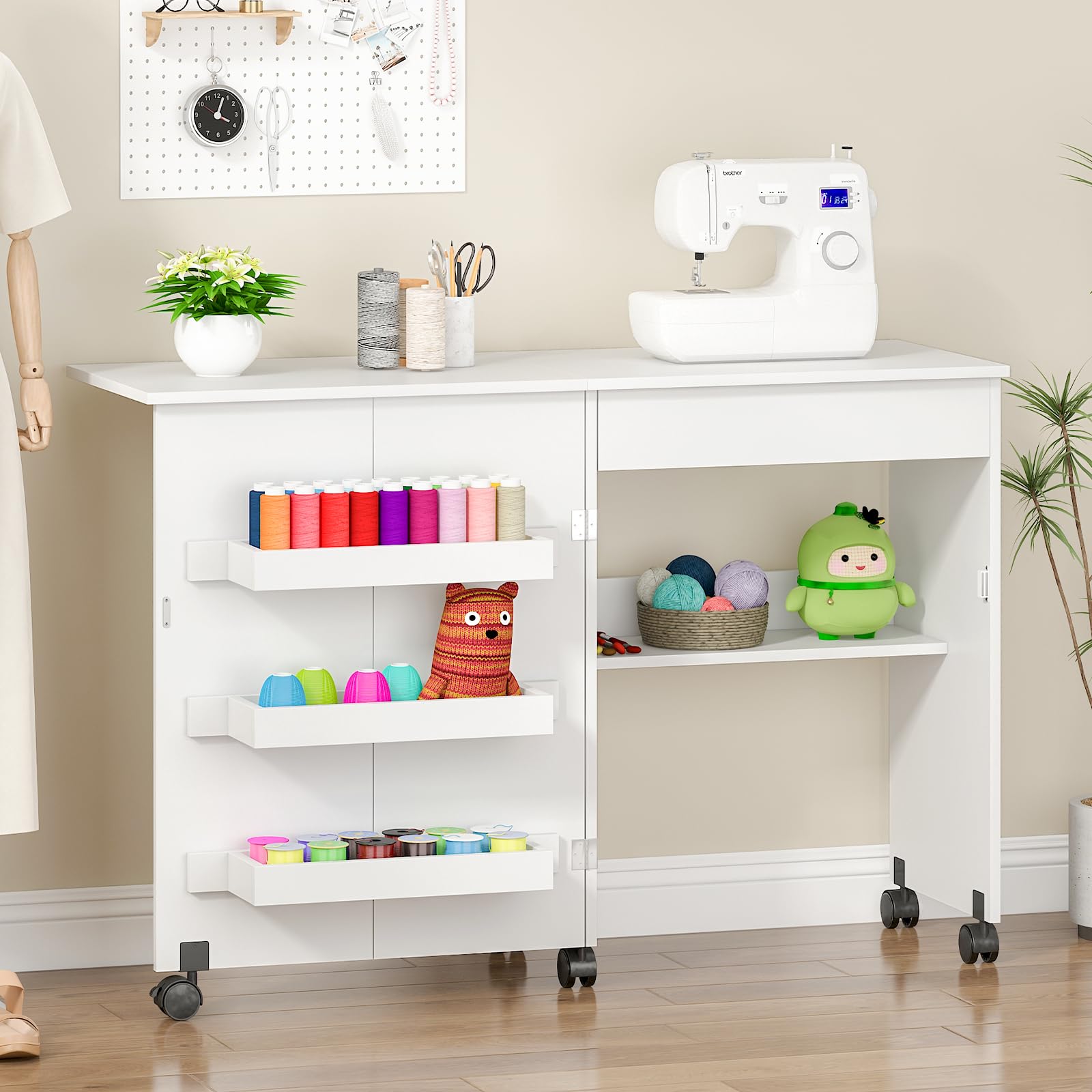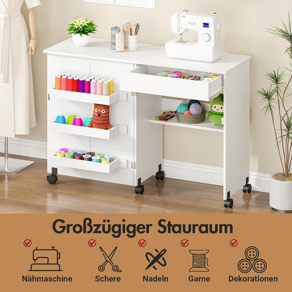 - 【Platzsparendes Klappdesign】Dieser multifunktionale Nähschrank ist perfekt für enge Räume. Dank seines kompakten Designs kann er nicht nur als Nähmaschinentisch, Computertisch,Schreibtisch oder Basteltisch verwendet werden, sondern er kann auch