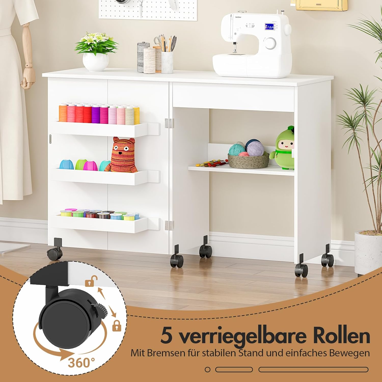 - 【Universalrollen für leichtes Verschieben】Dieser Nähtisch faltbar ist mit 5 drehbaren Universalrädern ausgestattet, die ein müheloses Bewegen von einem Raum zum anderen ermöglichen, ohne Ihren Boden zu zerkratzen oder zu beschädigen. 2 der