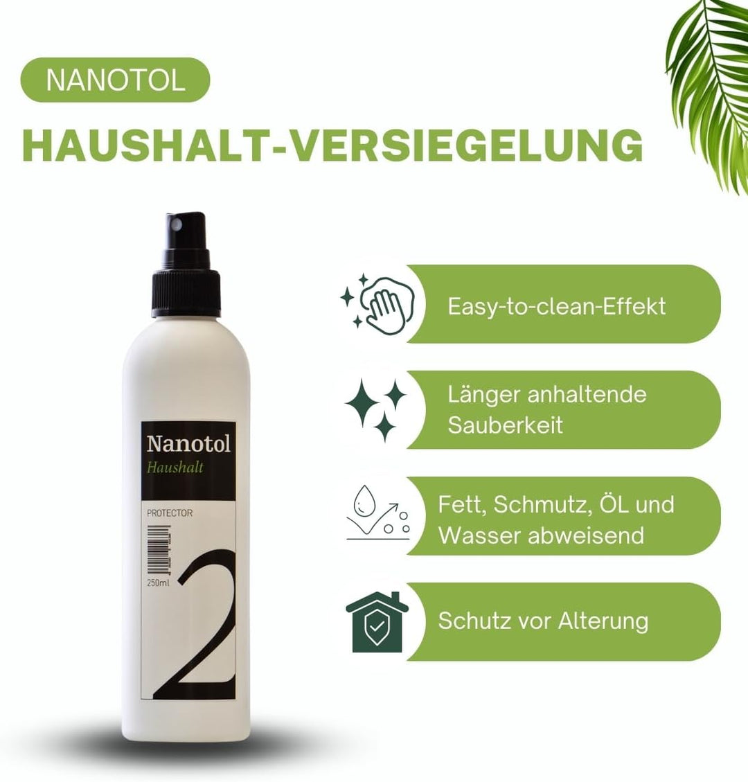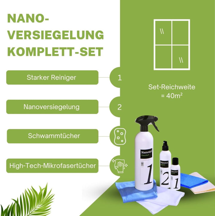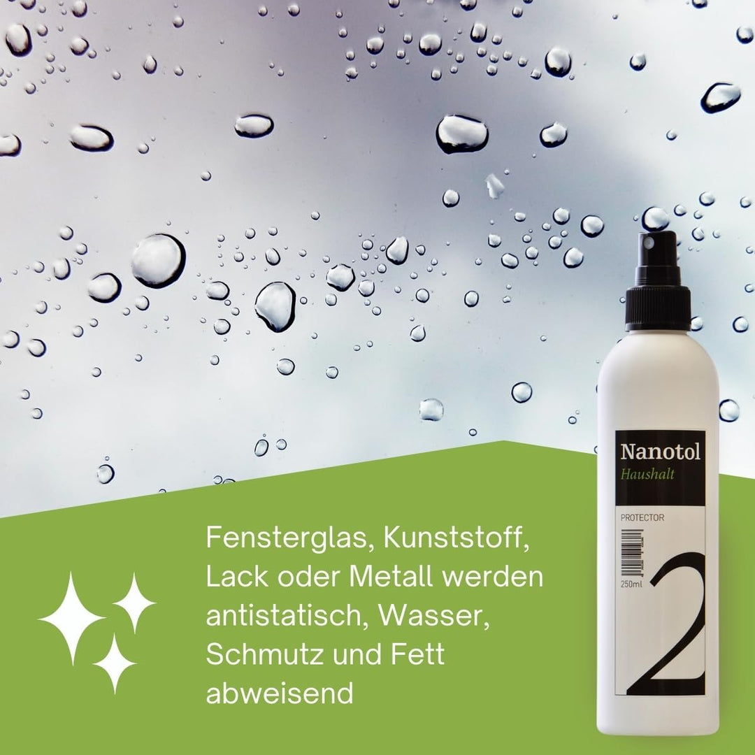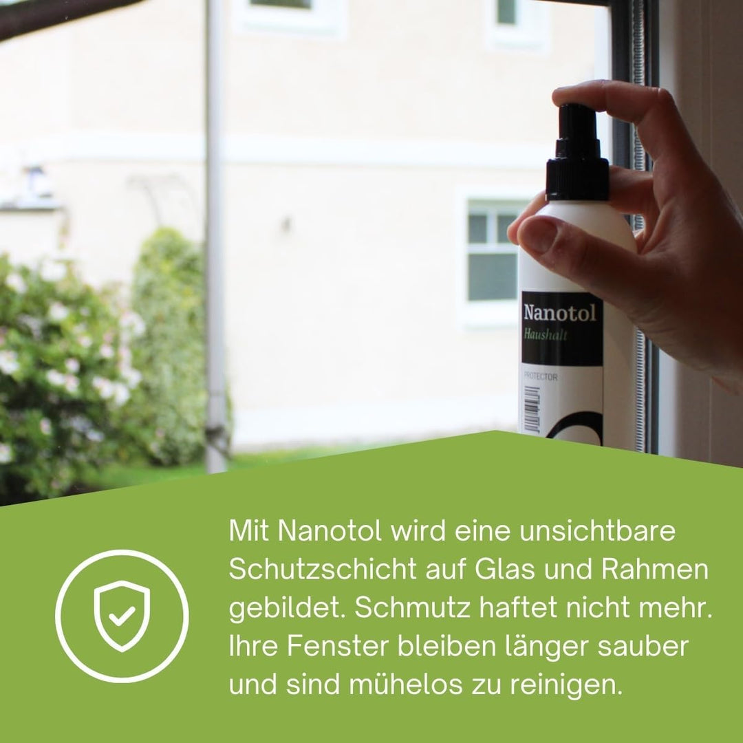 - LANGFRISTIG WIRKSAM - einmal versiegelt sind Glas und Rahmen für 2-3 Jahre geschützt. Die Auffrischung geht schnell und einfach mit Nanotol Haushalt 2in1. Sie brauchen nie wieder Glasreiniger benutzen und haben nie wieder Streifen.
