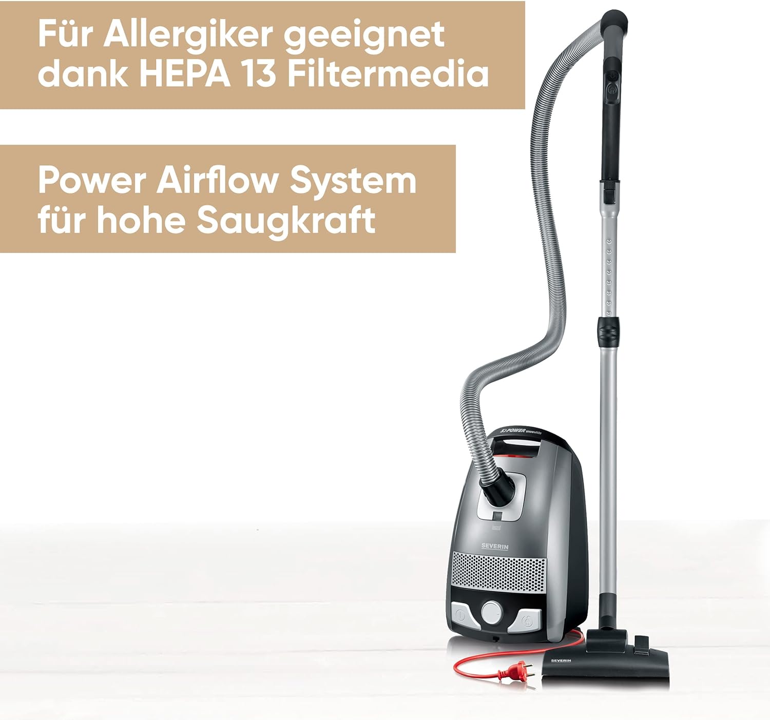 - Details – SEVERIN S'POWER Bodenstaubsauger mit Beutel, inklusive extra Staubsaugerbeutel, mit Soft-Sound Bodendüse und XL-Parkettdüse für empfindliche Boden, besonders leise, Artikel-Nr. 7045.