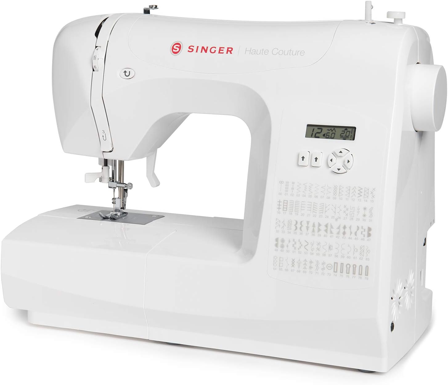 - 80 Stiche - Grund-, Stretch- und Zierstiche für eine Vielzahl von Nähtechniken und Stoffen. 8 Fuss inklusive - Tolle Extras zur Erweiterung der Fähigkeiten Ihrer Maschine. LCD-Bildschirm - zeigt die Stichauswahl sowie die Einstellungen für Stichlänge und -breite an