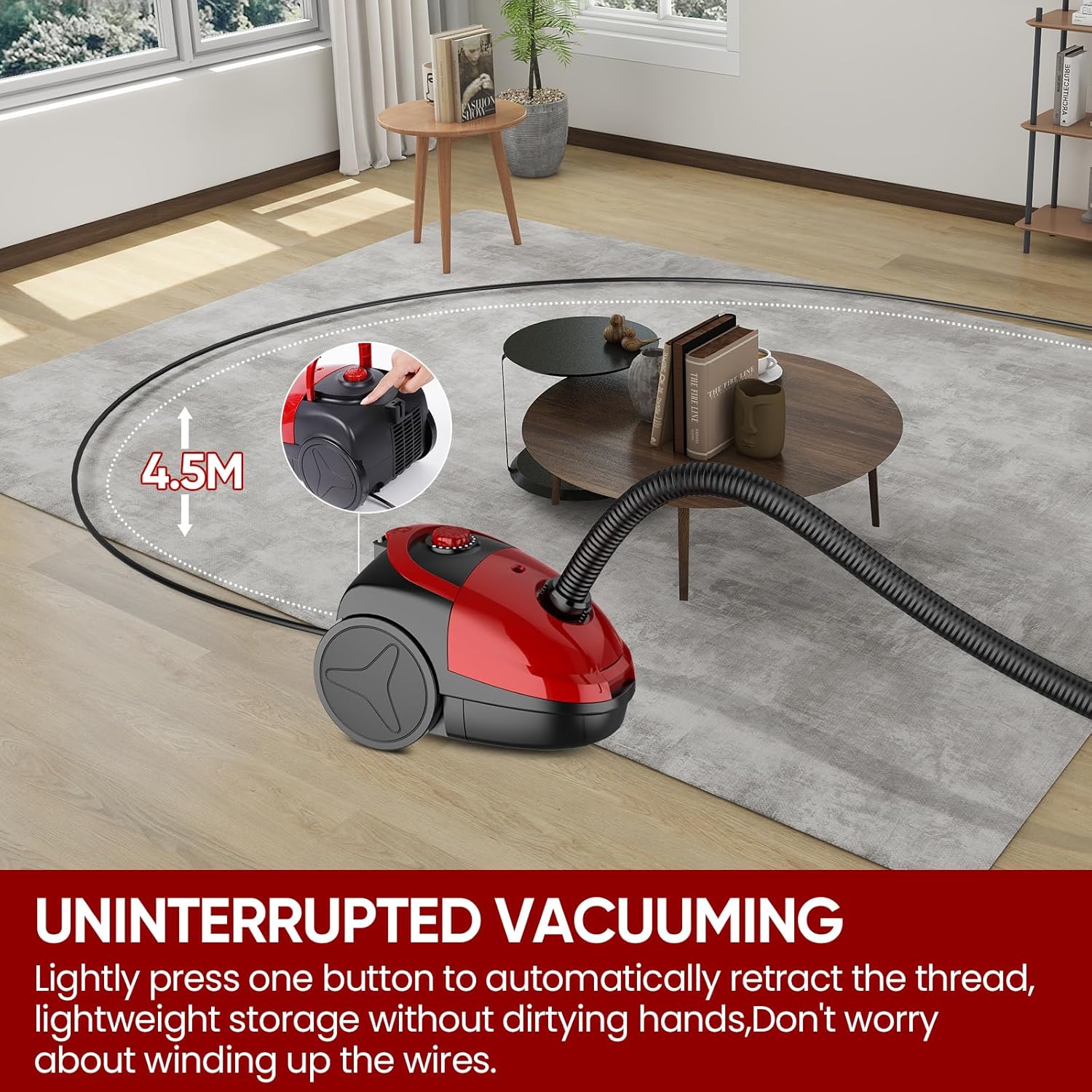 - 【Multifunktionales Reinigungswerkzeug】Ausgestattet mit 2-Saugdüsen eignet sich der leichte Staubsauger für verschiedene Bodentypen und Möbelreinigungsanforderungen und bietet ein umfassendes Reinigungserlebnis. Der Haushaltsstaubsauger ist mit